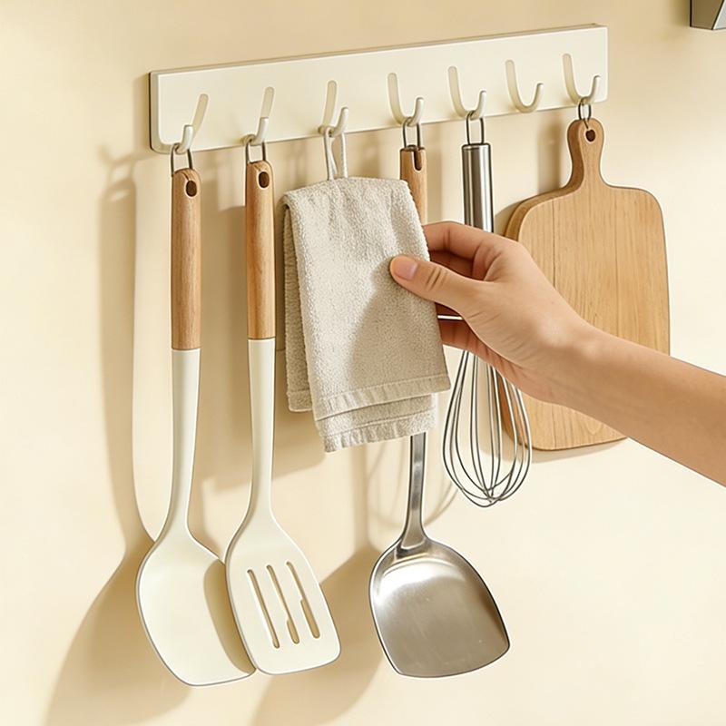 Kitchen Non-drilling Magnetic Hook Door Rear Hook for Hanging Spatulas and Spoons - Seamless Wall-mounted Storage Rack
