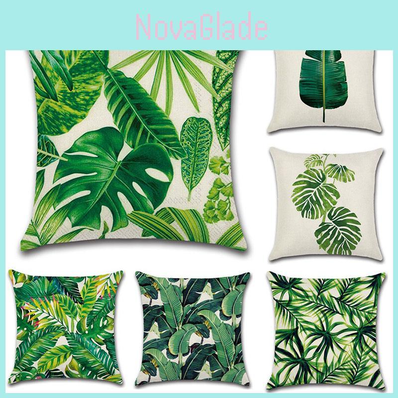 Luxurious 18'' Green Tropical Plant Pillow Case Cotton Sofa Cushion Cover Decorative