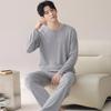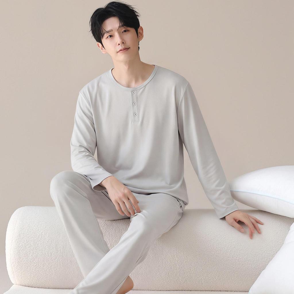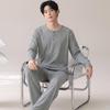 2026 Spring Men's Pure Cotton Casual Pajamas - Solid Color, Round Neck, Indoor/Outdoor Wear