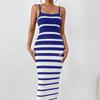 Funkce: Šaty vhodné pro těhotenské bříško mají bezrukávový styl, žebrovanou pleteninu, elegantní pruhovaný potisk, boční rozparek, midi délku, slim střih, čtvercový výstřih, široká ramínka. Sexy letní šaty, ideální těhotenské šaty, šaty na ven, šaty pro svatebního hosta, šaty pro ženy ležérní jaro léto