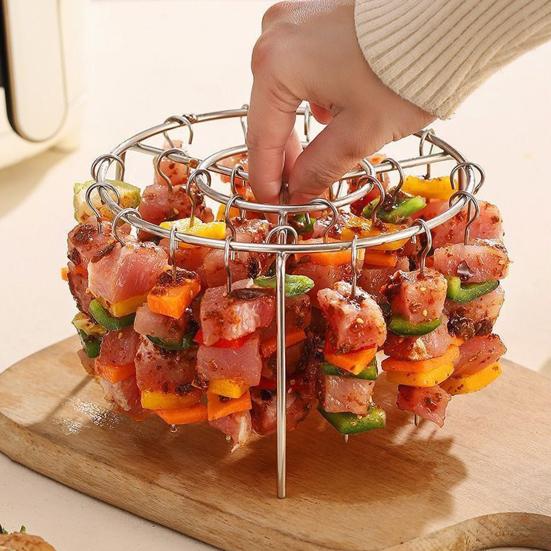 Pevná nerezová ocel pro dlouhodobé použití: Tento rošt na špízy do horkovzdušné fritézy, vyrobený z prvotřídní nerezové oceli, je navržen tak, aby odolal vysokým teplotám bez deformace nebo ztráty lesku.. Zažijte odolný výkon a spolehlivost pro rozšířené každodenní používání v jakémkoli prostředí horkovzdušné fritézy nebo trouby.