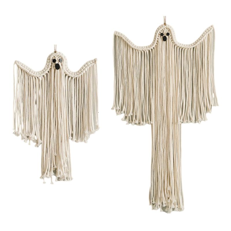 M-Modern-2PCS Halloweenparty Macrame Wall Hangings Witchy Spooky Home Decor Dark Academia Gothic Boho Art