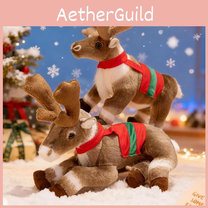 This plush reindeer decoration measures 32cm tall and features a realistic design with short-pile plush and PP cotton filling. It showcases a standing or lying pose, ideal for holiday decor, adding a festive touch to homes or event spaces. Easy to clean by wiping with a damp cloth.