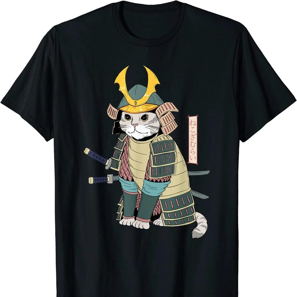 Japan Art Samurai Cat T Shirt New 100 Cotton Short Sleeve ONeck Tshirt Casual Mens Top