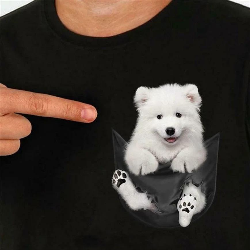 Samoyed In Pocket Cute Puppy Printed Dog Lovers Gift TShirt 100 Cotton ONeck Short Sleeve Casual Mens Tshirt Size S3XL