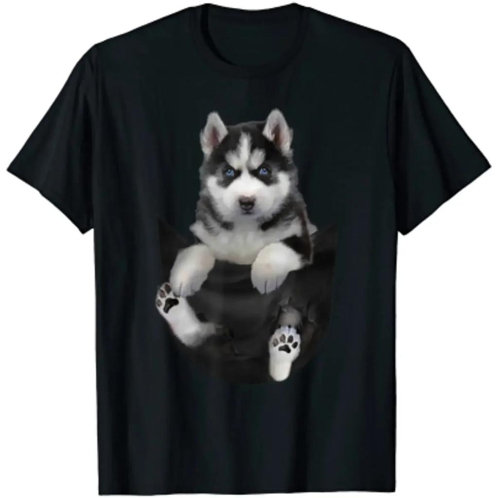 Puppy In Pocket Funny Design Husky Dog Lover Gift TShirt Short Sleeve Casual 100 Cotton ONeck Summer Mens Tshirt Size S3XL