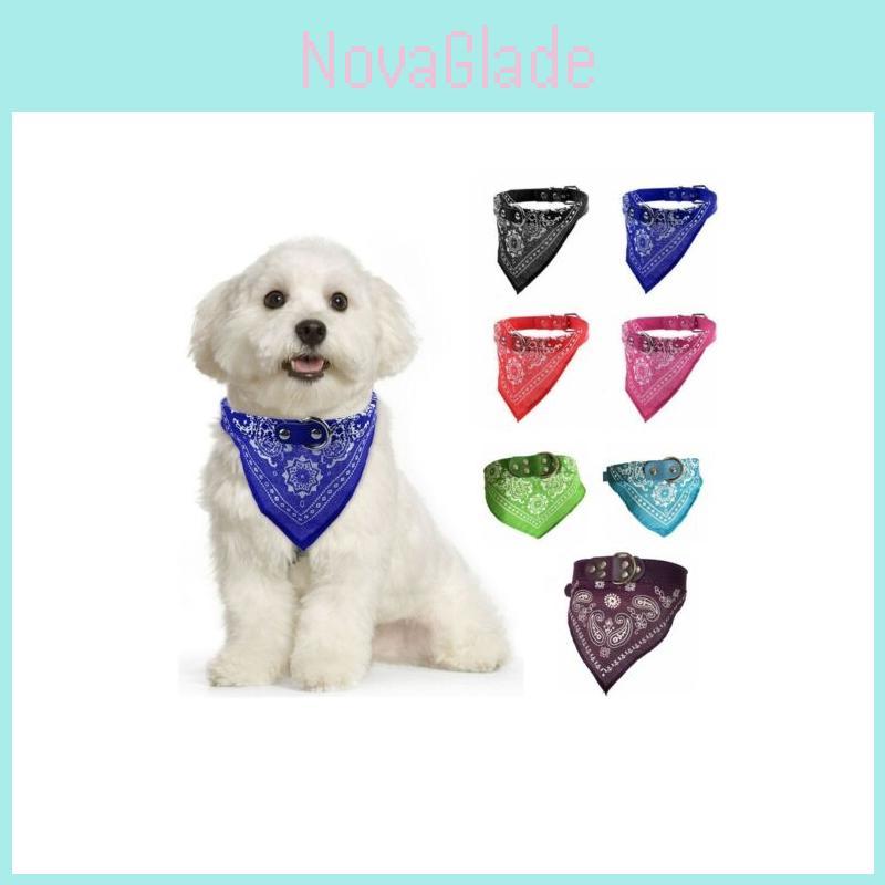 Adjustable Pet Dog Puppy Cat Neck Scarf Bandana With Leather Collar Neckerchief