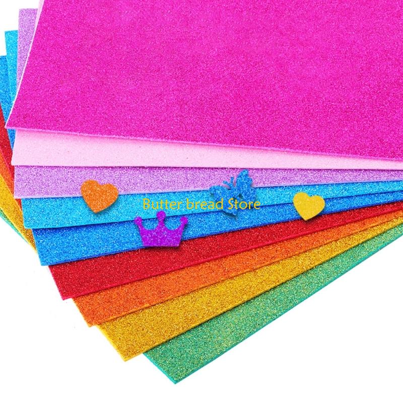 W89C 10Pcs Glittering Sponge Paper 2mm Thickness Adhesive Craft Paper Assorted Color