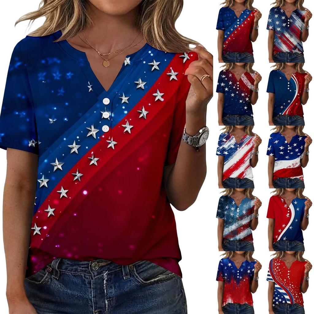 Women's Fashionable Casual Independence Day Print Blouse