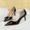 European And American Style Banquet Women's Shoes High Heels Shallow Tips Patent Leather Side Hollow Metal Buckle Single Shoes