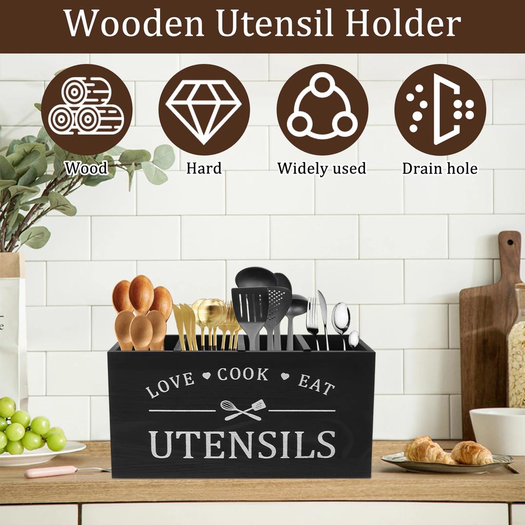 Wood Kitchen Utensil Holder Spoon Fork Tableware Storage Rack Container Kitchen Cooking Utensil Organizer with 4 Compartment New