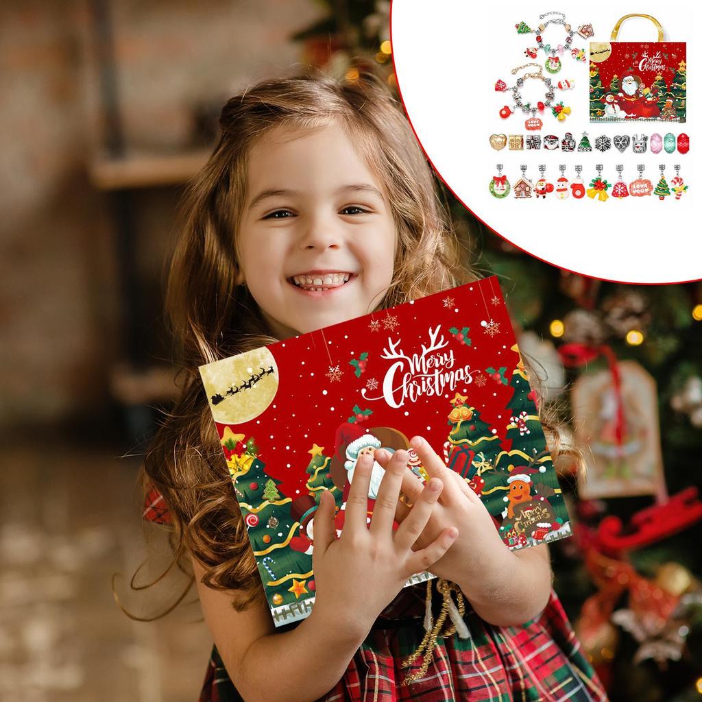 Christmas Charm Bracelet Advent Calendar gift Box 24-bead Christmas Bracelets Jewelry Making Kit For Woman Girls