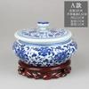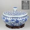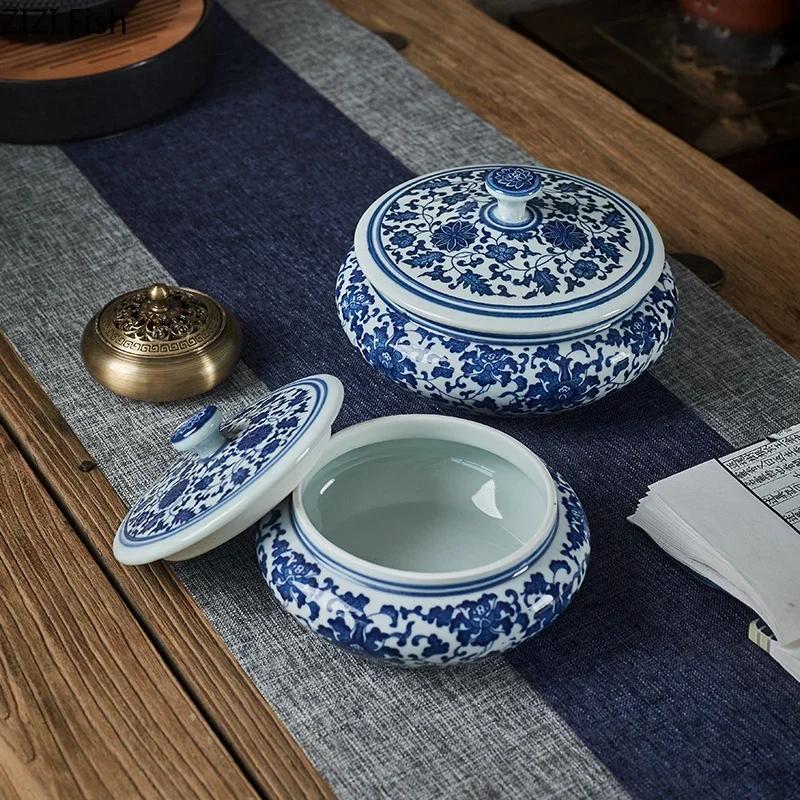 Vintage Ceramic Storage Jar with Lid Blue Flower Pattern Tea Caddy Living Room Ornament Flat Belly Ceramics Jar Home Decoration
