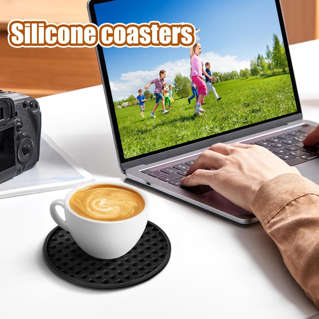 Silicone Coasters Set of 6 with Holder - Non-Slip, Heat-Resistant Drink Pads for Dining Table, Kitchen, Office, Bar & Home Decor