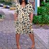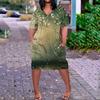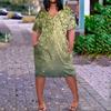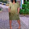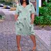 Summer Plus Size V Neck Short Sleeve Knee Pocket Print Casual Dress For Women