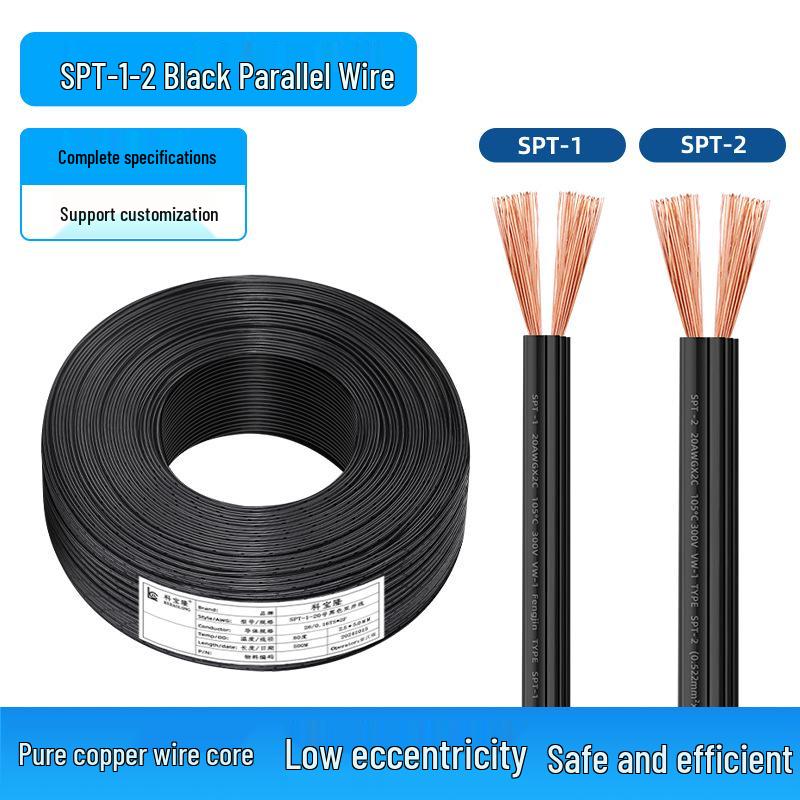 SPT Electronic & Lighting Wire Extension: Black Parallel Stranded Automotive Cord