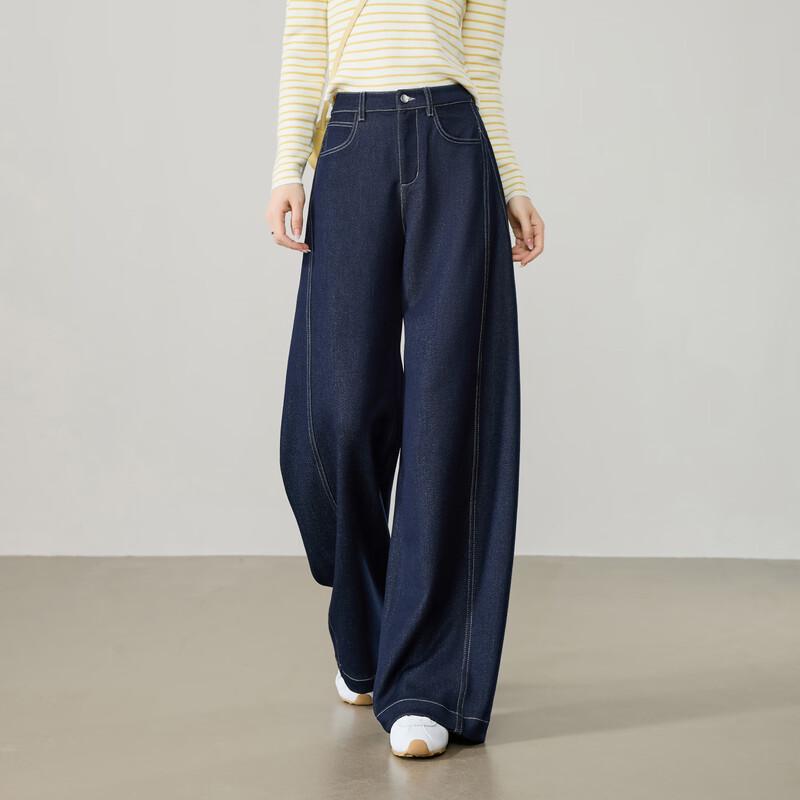 ESE-Y Dámské široké kalhoty s vysokým pasem z imitace denimu