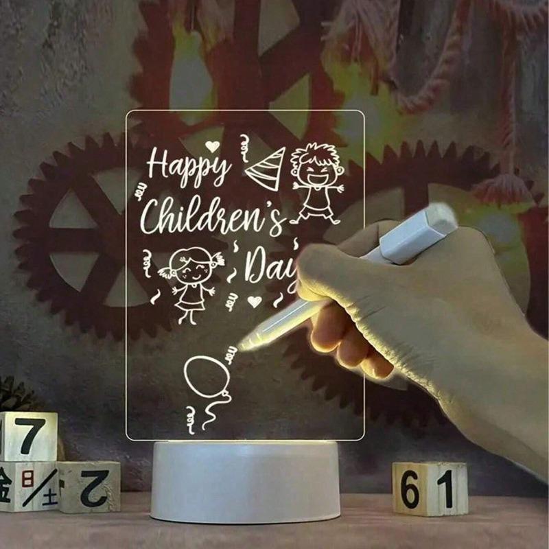 3D Acrylic Writing Board Night Light - Erasable LED Message Board with USB Power, Glowing Note Pad for Home Bedroom Office