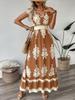 Elevate your summer wardrobe with this elegant V-neck, waist-cinching long dress, designed to capture both European and American styles. Crafted from soft polyester material, the dress offers a comfortable and breathable fit, perfect for warm weather outings. The eye-catching print adds a touch of flair, while the silhouette is designed to flatter your figure, providing a versatile piece that transitions seamlessly from day to night.