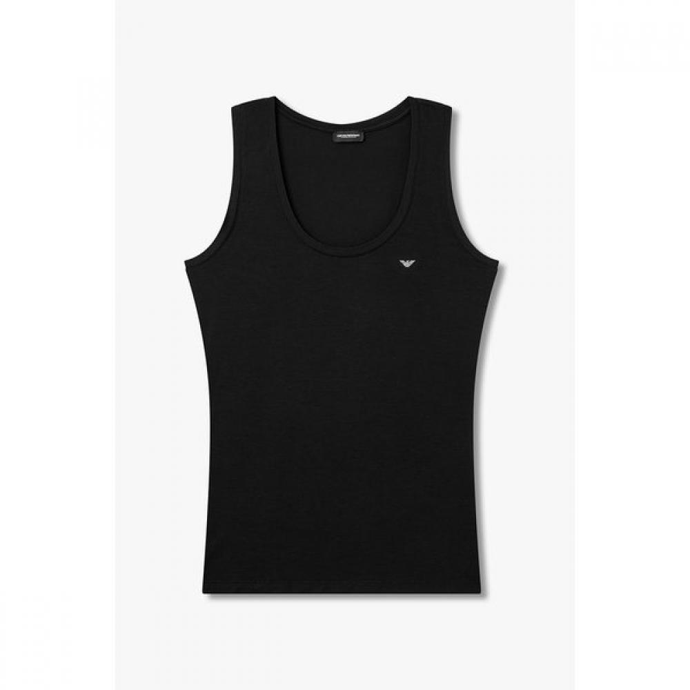 The Women's Rayon Stretch Lounge Tank Top offers excellent comfort. It features a rib crew neck design, complemented by an eagle logo point that adds a touch of style. With its great elasticity, it is suitable as loungewear for active days.