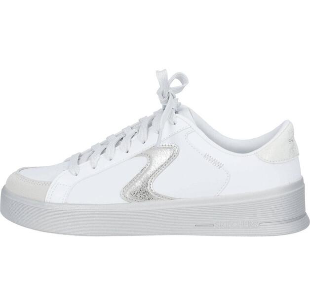 ХАРАКТЕРИСТИКИ ───────────────────────── Цвета: белый, бежевый, серый, серебристый Стиль: Металлик Застежка: со шнуровкой Тип продукта: Low-Top-Sneaker Для: Женщины Верхний материал: Искусственная кожа