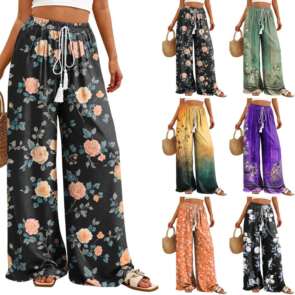 Women's Wide-Leg Casual Flowy Floral Print Pants