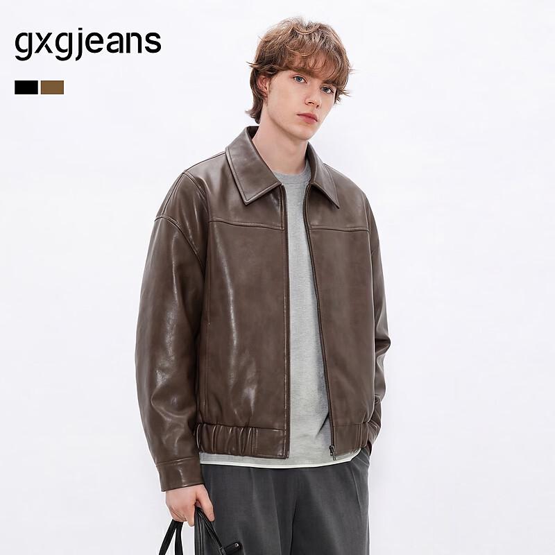 gxgjeans Men's 2025 Spring Lapel PU Leather Jacket