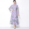 Spring Clothing for Women 2026 New Style High-End Flower Printed Belt Slim-Fitting Long French Long Sleeve Chiffon Maxi Dress
