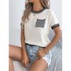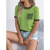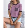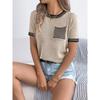 Jarní a letní ležérní pletený top s kontrastními pruhy a výplní, s krátkým rukávem, pro ženy