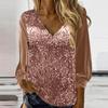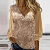 Womens Sequin Tops V Neck Sparkly Glitter Blouses Loose Long Sleeve Holiday Evening Party Shiny Dressy Shirts