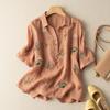 Short-sleeved Cotton and Linen Shirts for Women in Summer New Style Loose Literary Retro Printed Fashion Tops Casual
