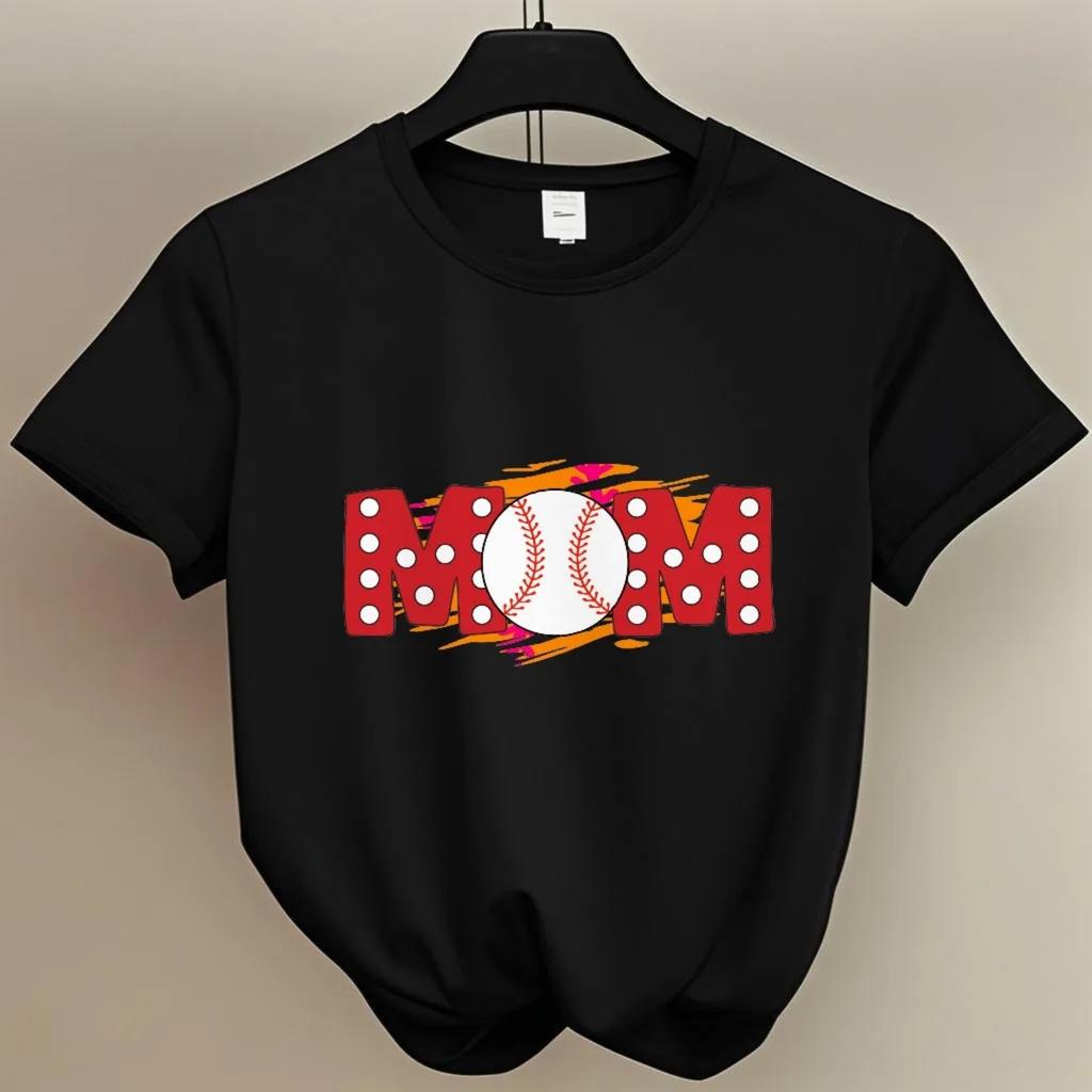 Baseball inspired Mom Print for Summer Sports Events Short Sleeve T Shirt for Women with a Fun & Sporty Style