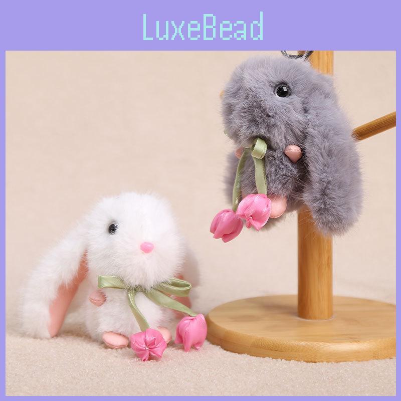 soft bunny charm, plush animal keychain, decorative bunny figurine, portable plush toy, cute animal accessories, small plush decor, everyday carry charm, adorable keychain ornament