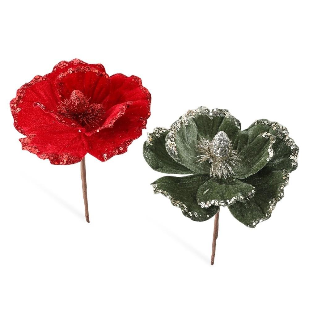 15cm Artificial Poinsettia Glitter Flower Flannel Sequin Fake Christmas Flowers Photography Props 3D Simulation Magnolia
