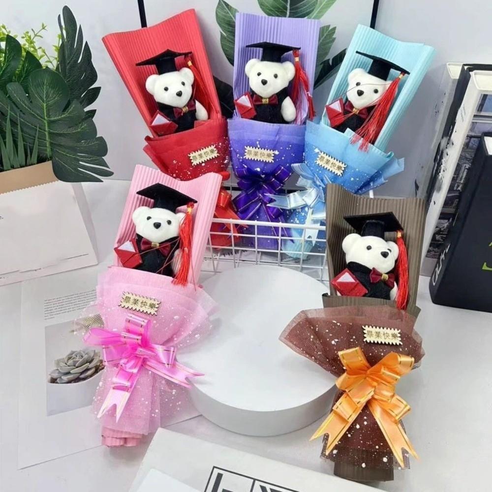 Lovely Graduation Bear Bouquet Simulated Plush Toy Bouquet Stuffed Simulated Bear Commencement