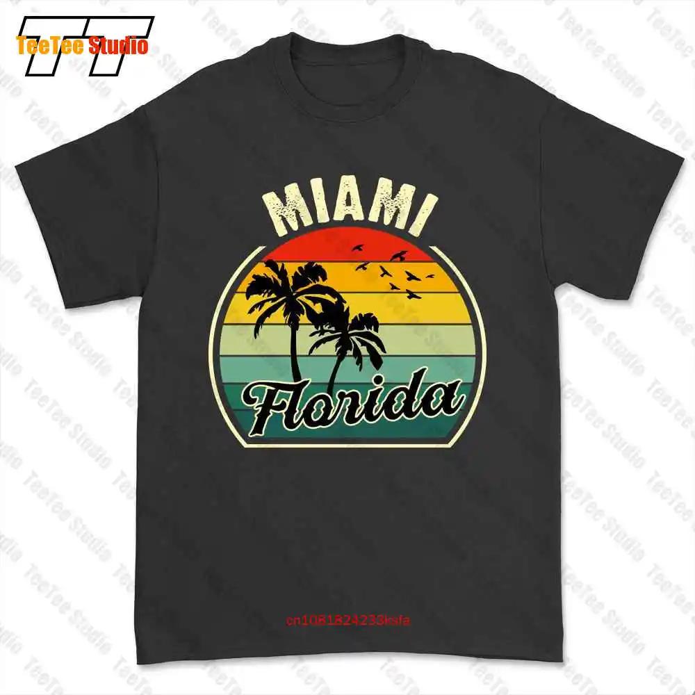 Miami Beach Florida Summer Vacation Sunset Palm Tshirt Tee 6M0Y