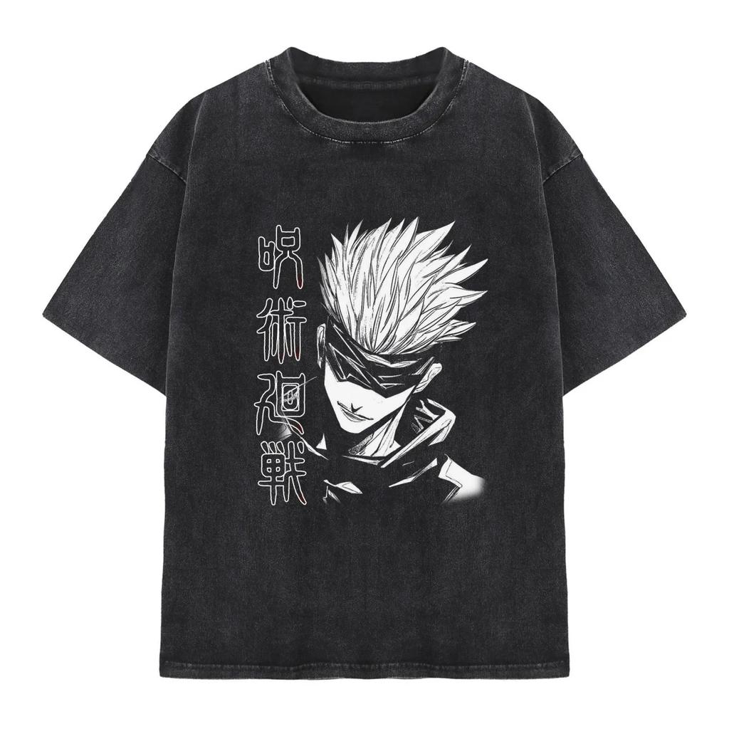 Gojo Satoru Jujutsu Kaisen Harajuku Anime Retro Vypraná Tričko Bavlna Pánské Streetwear Oversized Dámské Krátký Rukáv Unisex