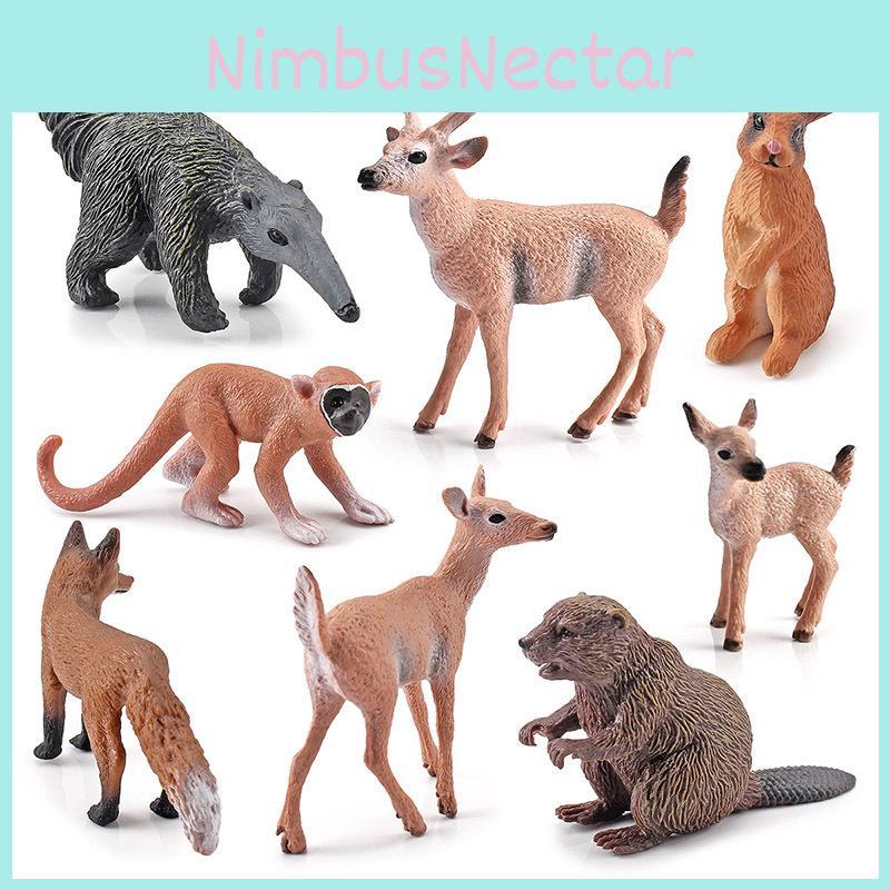 This features realistic, static animal models crafted from durable PVC material, representing species such as squirrel monkeys, beavers, anteaters, foxes, and deer. Ideal for educational displays, dioramas, or nature-themed decor. Wipe clean with a damp cloth to maintain detail.