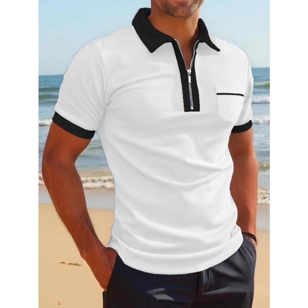 Men's European and American Pocket Fashion Casual Slim Fit Lapel New Polo Shirt