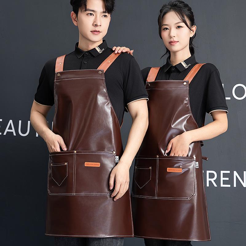 Women's Waterproof PU Leather Apron for Catering, Seafood, and Kitchen Use