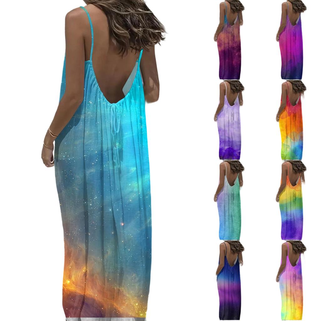Dámské Módní Ležérní Volné Šaty s Květinovým Potiskem a Úzkými Ramínky Bez Zad