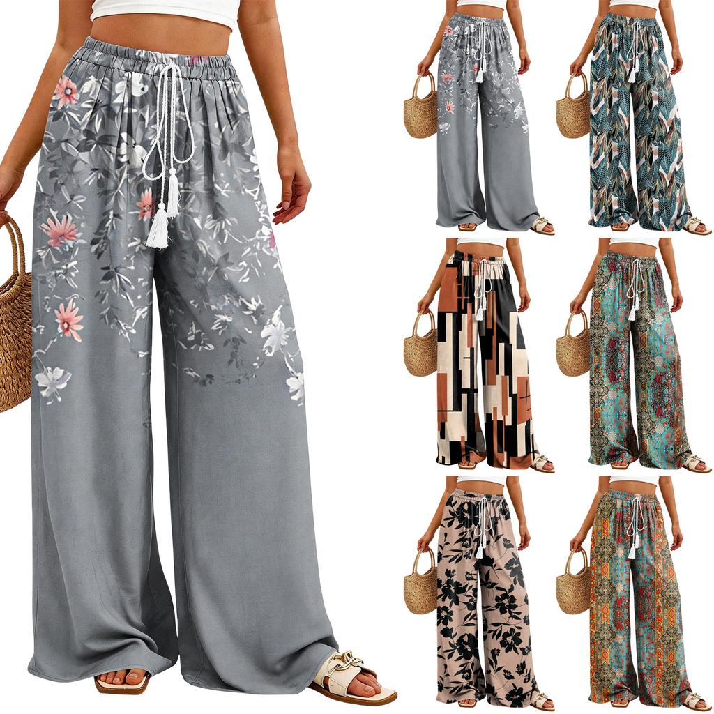 Women's Wide-Leg Casual Flowy Floral Print Pants
