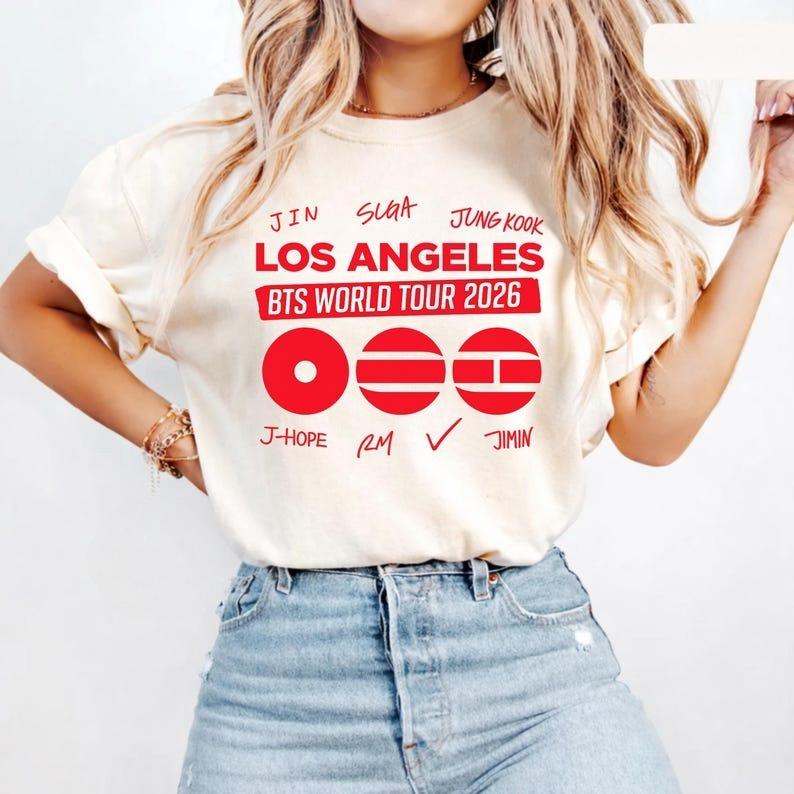 BTS Světové turné 2026 Oboustranné unisex tričko, tričko z koncertu BTS 2026, dárek pro fanouška Army, BTS Merch, tričko pro fanouška Army, tričko z comebacku BTS Arirang