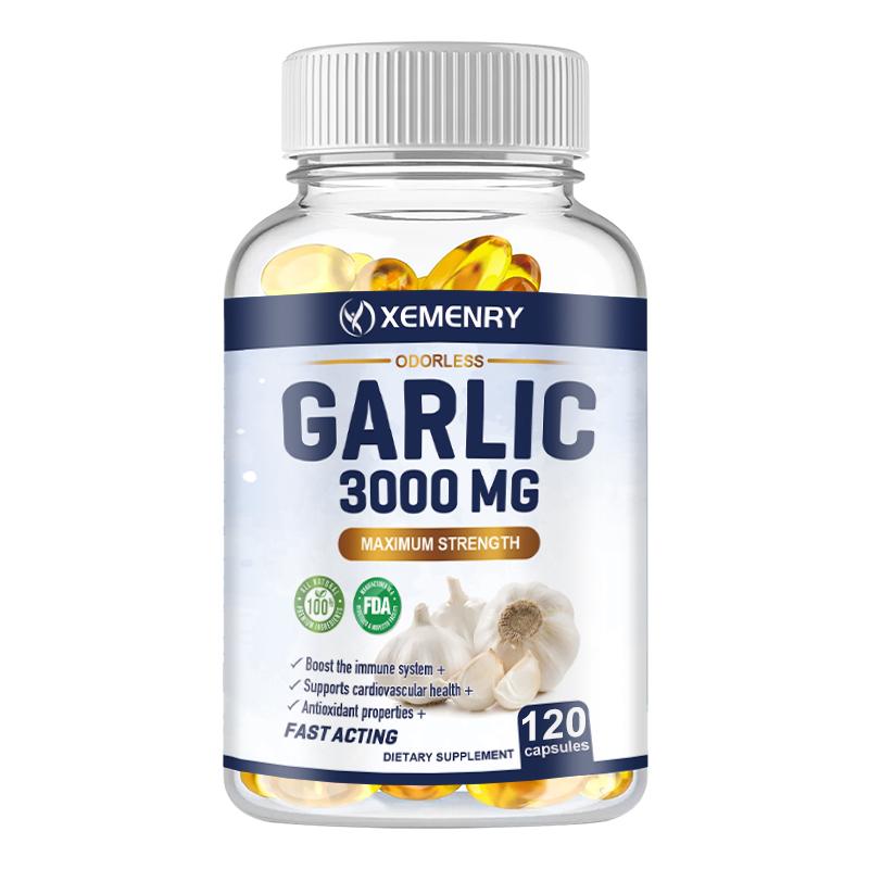 Our pure garlic softgels contain 3000 mg of allicin per serving. We are proud to offer you pure, odorless garlic, free of any fillers, magnesium stearate, carbon dioxide, preservatives, gluten, sugar, yeast, or starch.