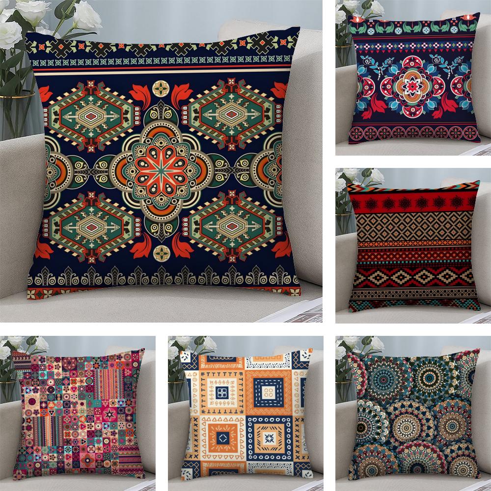 Red Ethnic Style Shading Cushion Cover Soft Plush Fabric DoubleSided Printed Sofa Cushion Cover for All Seasons Home Decor Gift