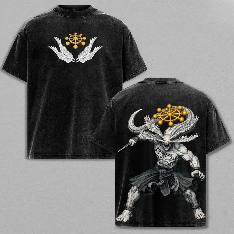 Mahoraga Jujutsu Kaisen Clothing Men Short Sleeve Manga T-shirts Vintage Washed T Shirt Casual Cotton Tee Harajuku Male Tshirt