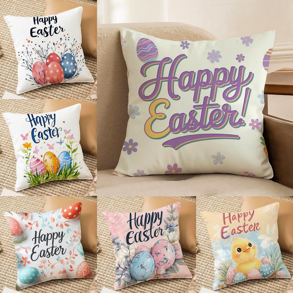 Happy Easter Bunny Cushion Cover Short plush Doublesided Print Square Throw Pillow Covers Sofa Home Cushion Decor