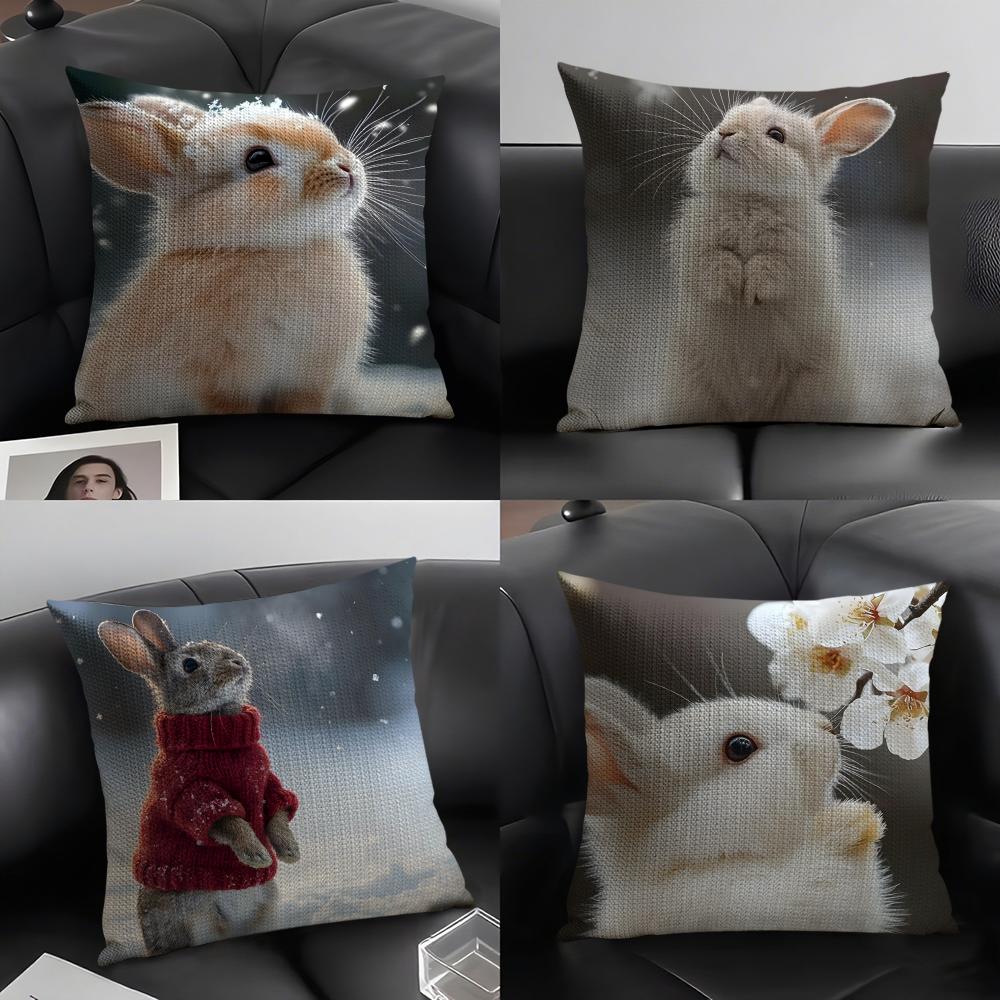 Rabbit Cute Cushion Cover Natural Linen Organic Fabric DoubleSided Printing Sofa Home Decor Gift Pillow Case
