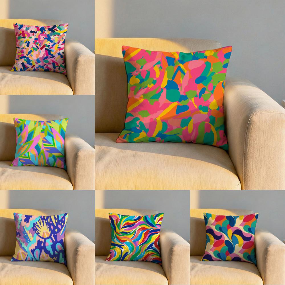 Abstract Colorful Pattern Cushion Cover Soft Reversible Durable Pillow Cover MultiScene Use for Home Car Daily Comfort