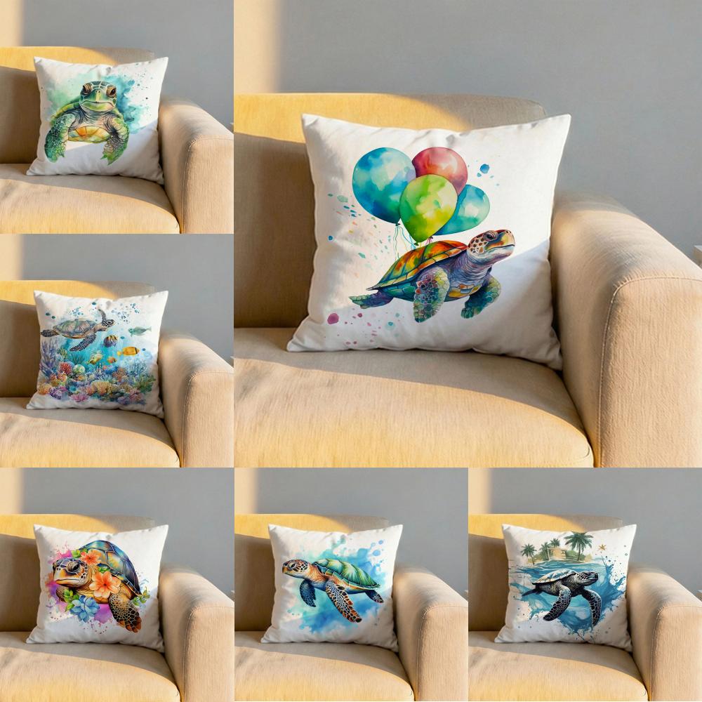 Watercolor Sea Turtle Cushion Cover Soft Reversible Durable Pillow Cover MultiScene Use for Home Car Daily Comfort
